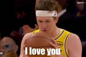 GIF-里夫斯1+2之后对着篮球说:I Love You!
