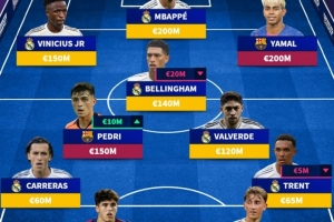 西甲身价最高11人阵:姆巴佩、亚马尔领衔,维尼修斯、佩德里在列
