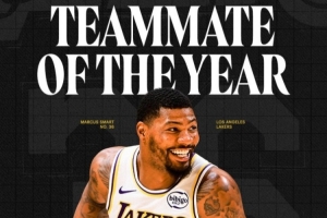 湖人官方晒出海报祝贺斯玛特:祝贺斯玛特入围年度最佳队友奖候选名单💜!