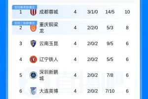 体育资讯04月05日讯 中超第4轮结束,目前积分榜上,三支西南地区球队蓉城、铜梁龙和玉昆继续领跑,泰山跌至第11,5队仍负分,申花逆转取胜逃离降级区,津门虎一胜难求负9分仍垫底。