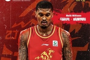 欢迎马利克·威廉姆斯加入浙江广厦大家庭!期待这位新援快速融入球队,将自己的技术特点与赛场活力注入球队,用强悍的表现助力浙商证券男篮乘风破浪,为球迷朋友们贡献更多精彩的比赛。